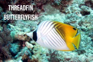 The Threadfin Butterflyfish is at the top of our list. Its white, black and bright yellow body make it almost impossible to miss. Most threadfins measure about 9 inches long and are seen roaming ocean waters from 1 to 115 feet deep.